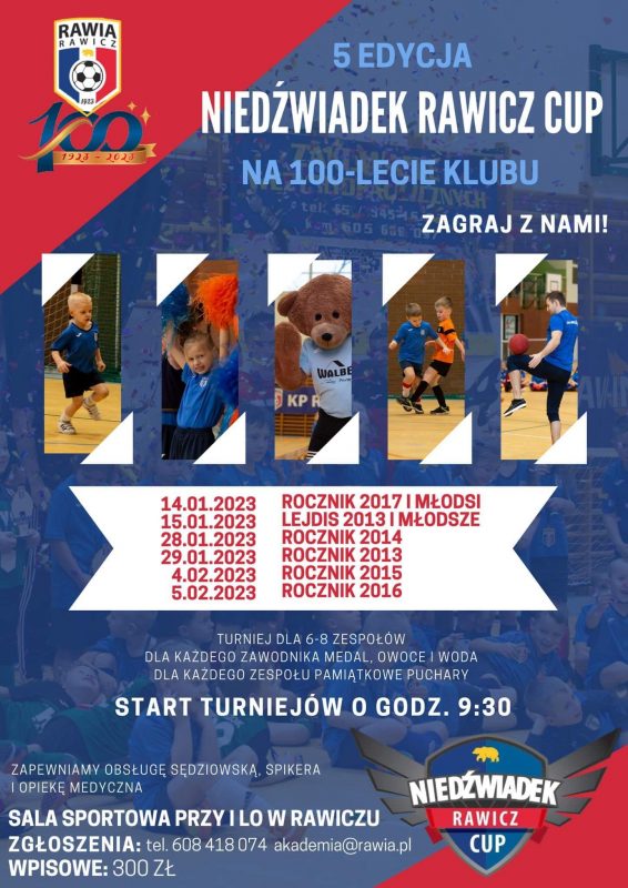 W styczniu i lutym odbędzie się V edycja turnieju dla dzieci „Niedźwiadek Rawicz Cup” organizowanego przez Rawię Walbet Rawicz oraz AP Młoda Rawia. Do rywalizacji przystąpią zespoły z roczników od 2013-2017.