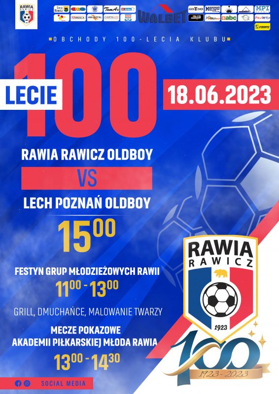 Wielkimi krokami zbliża się jeden z kulminacyjnych punktów obchodów 100-lecia istnienia Klubu Piłkarskiego Rawia Rawicz. W niedzielę, 18 czerwca na stadionie przy ul. Spokojnej odbędzie się wydarzenie, którego finałem będzie mecz pomiędzy Rawią Rawicz a oldboyami Lecha Poznań.