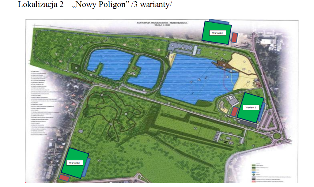 - Obszar inwestycji „Nowy Poligon”, gdzie możliwa będzie w przyszłości rozbudowa infrastruktury sportowej, rekreacyjnej i hotelowej /opcjonalnie/.