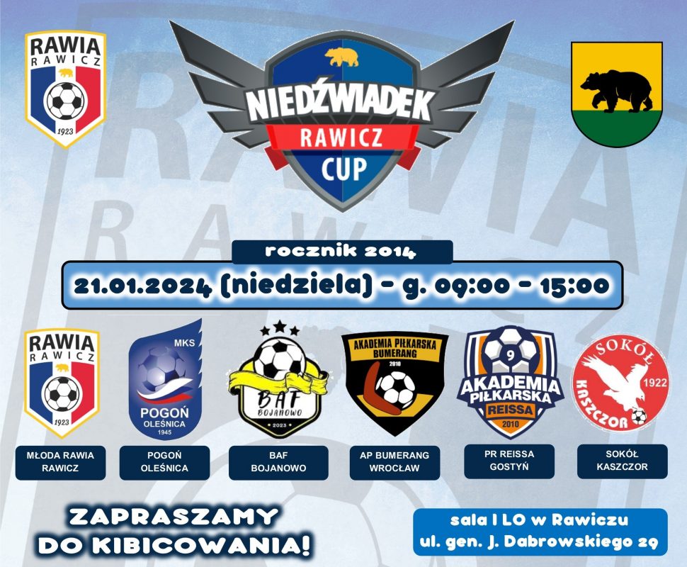 W pierwszym turnieju oprócz gospodarzy wystąpią: Pogoń Oleśnica, BAF Bojanowo, AP Bumerang Wrocław, APR Reissa Gostyń oraz Sokół Kaszczor. Początek turnieju w sali I LO w Rawiczu o godzinie 9:00.