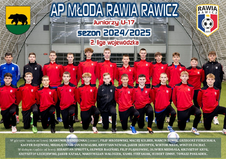 Udaną jesień zanotowali juniorzy młodsi B1 Rawii. Podopieczni trenera Sławomira Wendzonki zwyciężyli w II lidze wojewódzkiej gr. 2 i w rundzie wiosennej zagrają w 1. lidze.
